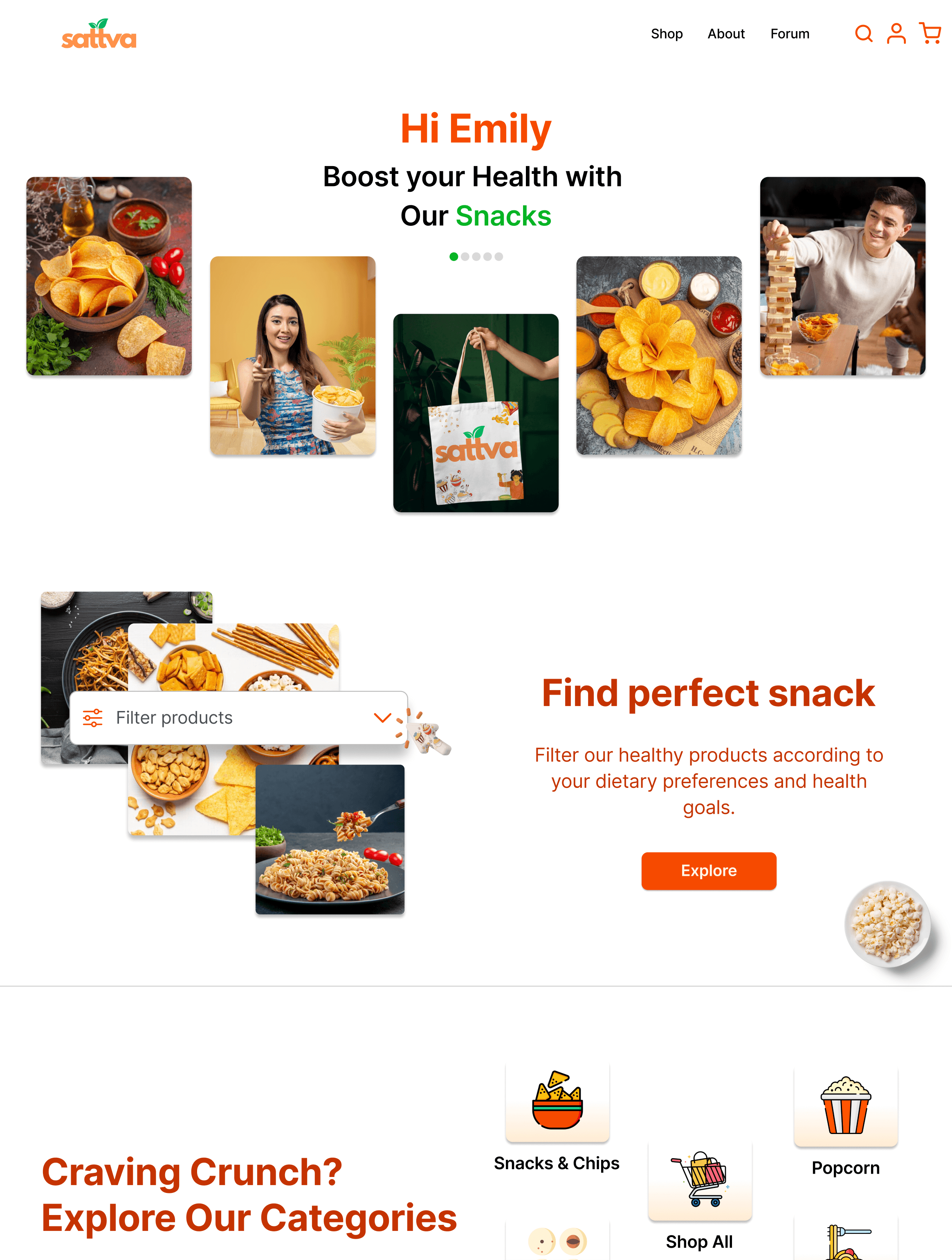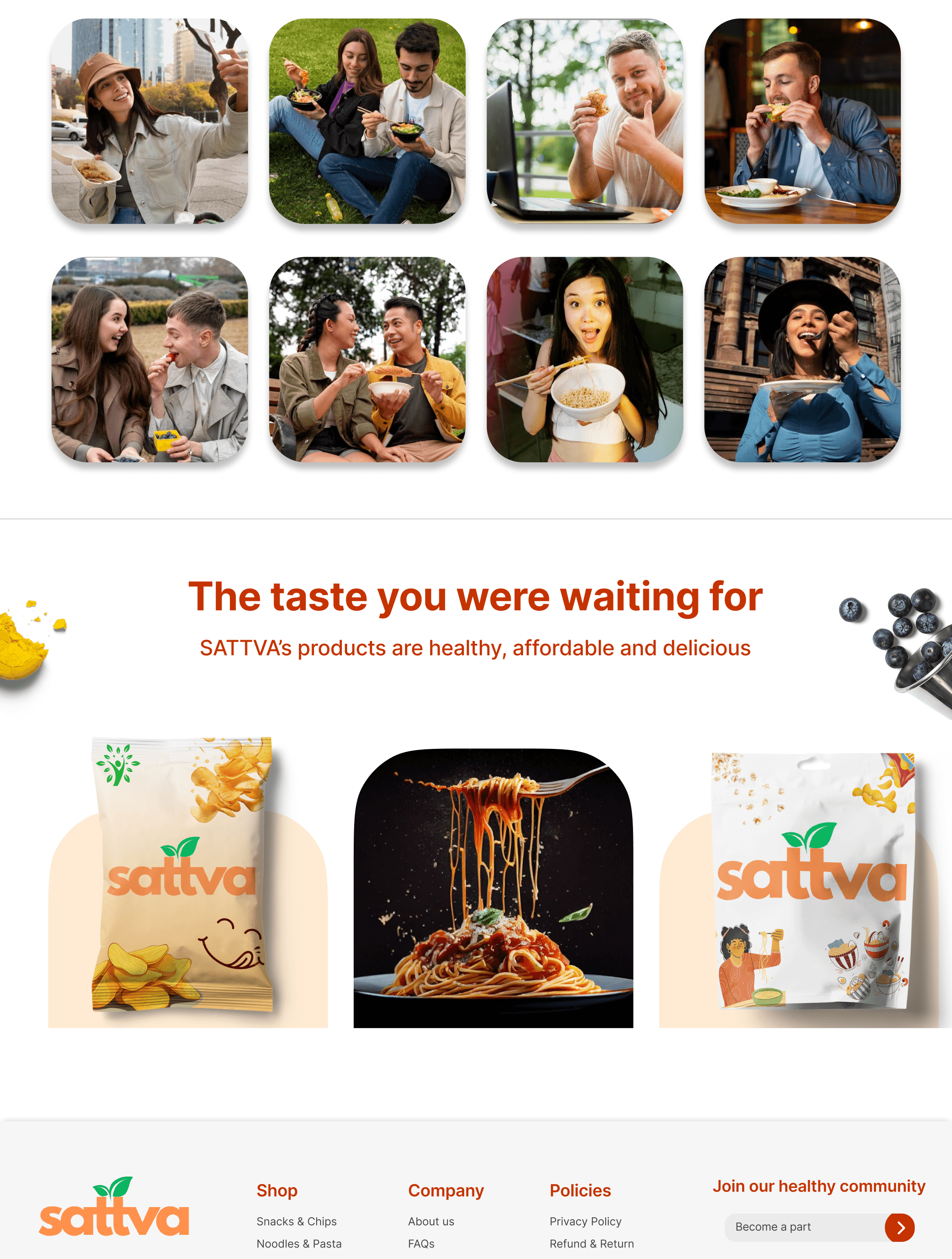 Brief About the Brand Sattva is a health-focused snack brand that offers tasty, affordable, and nutritious alternatives to unhealthy foods. With a mission to prevent lifestyle diseases caused by poor eating habits, they wanted a brand identity and website that feel clean, trustworthy, and inspire a shift toward mindful eating. Our Thoughts We wanted to create a fresh, approachable design that reflects the brand’s commitment to health, affordability, and taste while motivating people to make better food choices. What We Designed We designed a clean, responsive website, a modern logo symbolizing balance and wellness, a natural color palette with greens, earthy tones, and soft neutrals, and branding assets like product visuals that communicate health, trust, and simplicity.